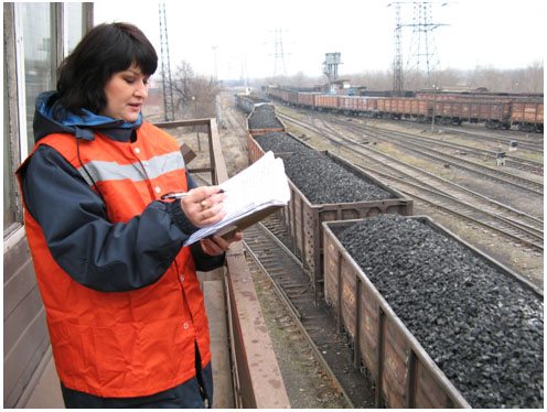 Эксперт Попова И.С. проводит экспертизу количества угля, поступающего в адрес ОАО «ЗМК «Запорожсталь» на весовой ж/д ...